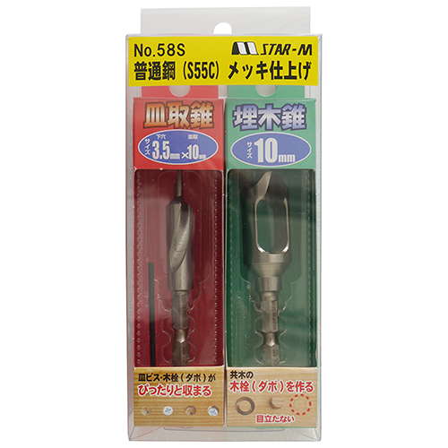 | 用途 | ビスの下穴(3.5mm)、皿取(10mm)、木栓作り(10mm)用ドリル。 |