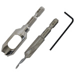 皿取錐/ビスの下穴と皿取、埋め込み用の下穴あけが同時にできます。 埋木錐/埋め込み穴の木栓(木ダボ)作りにご使用ください。 |