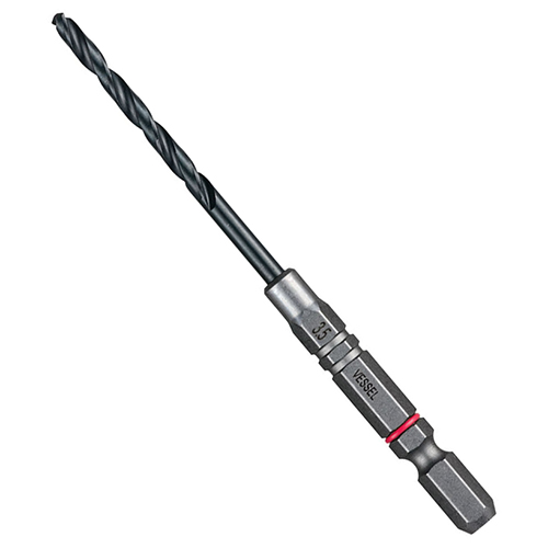 プレス結合刃先から六角軸までプレス加工で一体化しているので、ドリルが抜けることはありません。 アンビルにスムーズに入り、ボール溝に食い込みません。 高硬度HSS(ハイス)鋼で切れ味が落ちません。 X形シンニング採用により、センターポンチ不要で、軽い力で穴あけができます。 |