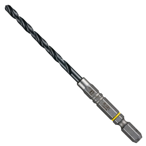 プレス結合刃先から六角軸までプレス加工で一体化しているので、ドリルが抜けることはありません。 アンビルにスムーズに入り、ボール溝に食い込みません。 高硬度HSS(ハイス)鋼で切れ味が落ちません。 X形シンニング採用により、センターポンチ不要で、軽い力で穴あけができます。 |
