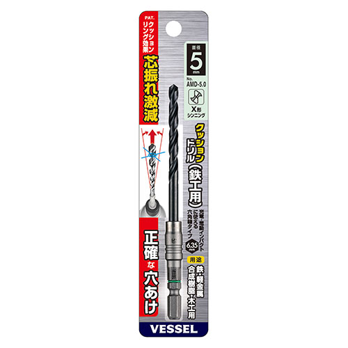 プレス結合刃先から六角軸までプレス加工で一体化しているので、ドリルが抜けることはありません。 アンビルにスムーズに入り、ボール溝に食い込みません。 高硬度HSS(ハイス)鋼で切れ味が落ちません。 X形シンニング採用により、センターポンチ不要で、軽い力で穴あけができます。 |