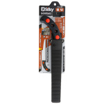 ●目数(30mm):8枚目。 ●刃厚:1.4mm。 ●切幅:1.3mm。 ●全長:収納時410mm(鞘入り時)・使用時370mm。 ●重量:335g。 ●アサリ無し・衝撃焼入・未来目。 ●ゴムハンドル・ハードクロームメッキ。 |