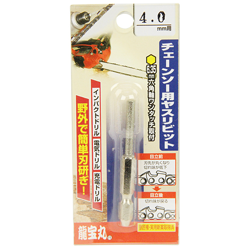 特殊ダイヤモンド搭載で、鉄やすりよりも格段に良い刃がつきます。 チェーンソーの上の刃は、棒やすりでは研ぎにくかったですが、これならヤスリ自体が回転するのでだれでも簡単に研げます。 市販のチェーンソー研ぎ機では、高価でコンセントの電源を必要としていましたが、これなら、充電ドリルを使うことによりどこでもだれでも低コストでできます。 |