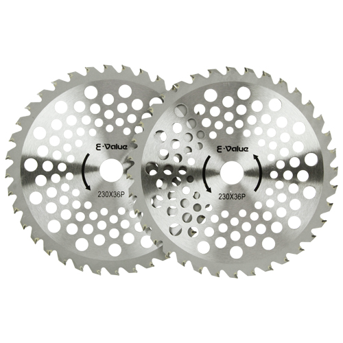 ●刃数:36P。 ●刃厚:2.0mm。 ●穴径:25.4mm。 ●刈払機推奨排気量:25cc未満。 ●2枚組。 |