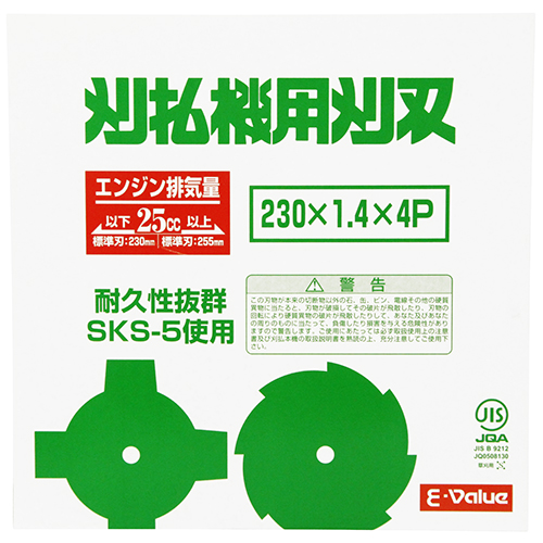 ●刃厚:1.4mm。 ●穴径:25.4mm。 ●刃数:4。 ●推奨刈払機:排気量25cc以下。 ●1枚入。 |