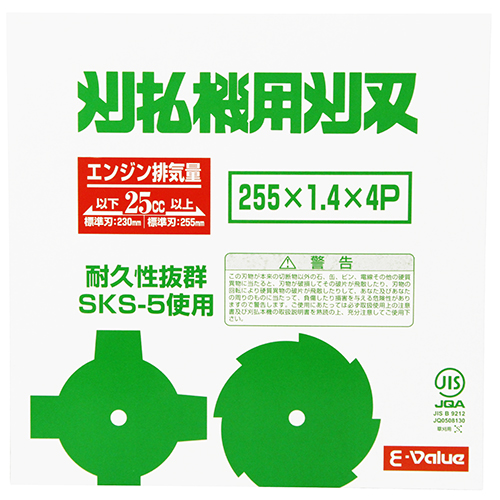 ●刃厚:1.4mm。 ●穴径:25.4mm。 ●刃数:4。 ●推奨刈払機:排気量25cc以下。 ●1枚入。 |