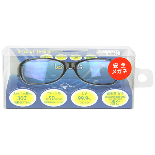 危険飛来物、ブルーライト、花粉、UVをシャットアウトします。 花粉もブロックできる形状ですが、デザインは都会でも恥ずかしくないイタリアを感じさせるようなデザインです。 安全メガネなのに、ブルーライトもカットする世の中にない商品です。 |