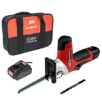 ●モーター電圧:10.8V。 ●ストローク数:2000min-1。 ●ストローク幅:16mm。 ●最大切断能力:鉄工6mm・アルミ10mm。 ●最大切断能力:ステンレス1mm・木工65mm。 ●質量(バッテリー含む):約1kg。 |