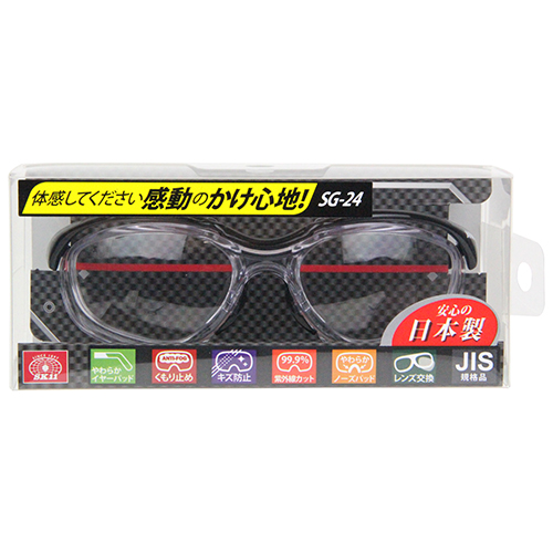 ●JIS規格品。 ●ノンメタル。 ●レンズ:ハードコート・曇り止めレンズ・紫外線カット。 ●やわらかイヤーパッド。 ●やわらかノーズパッド。 |