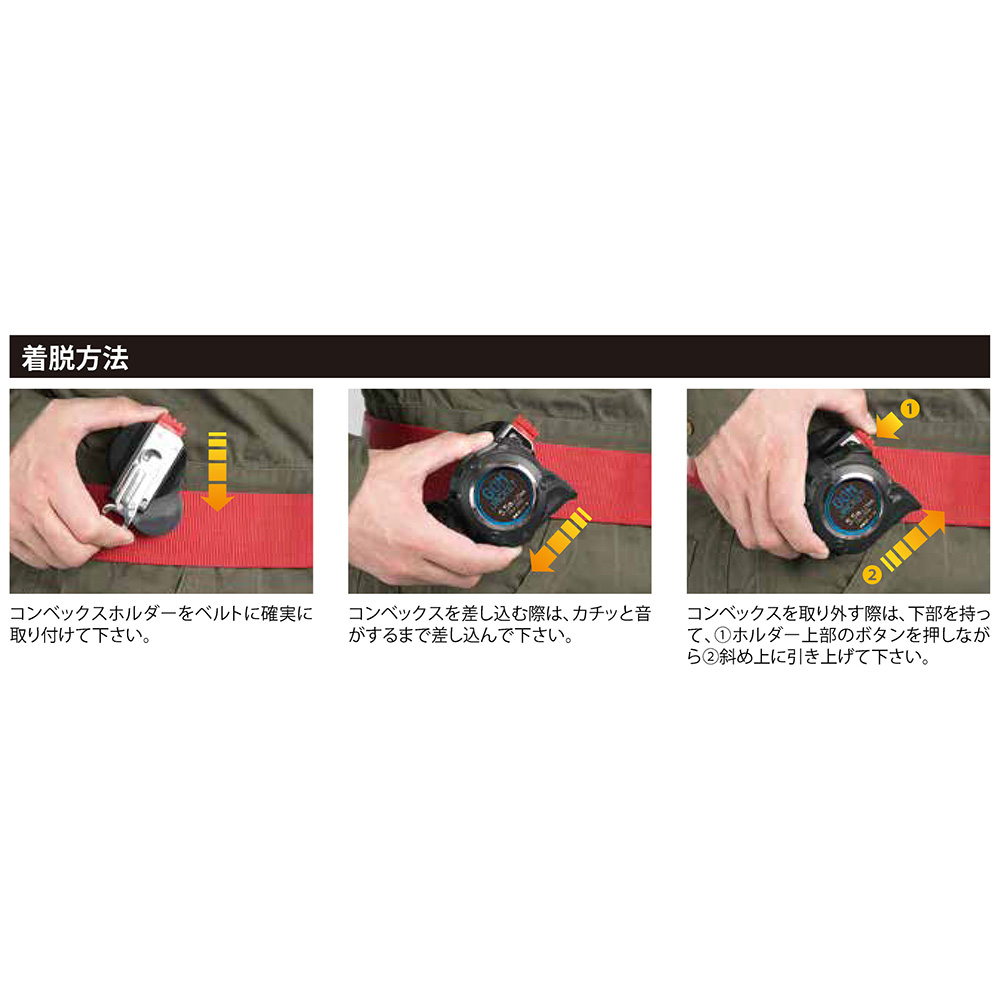 | 機能・特徴 | コンベックスに標準で付いているベルトクリップを活用し、着脱可能です。
