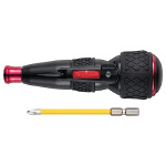 ●無負荷回転数:280min-1。 ●最大トルク:2Nm(電動)/10Nm(手動)。 ●スリーブ:対辺6.35mm、アルミスリーブチャック。 ●充電回数:約500回。 ●連続使用時間:約40分(無負荷時)。 ●ねじ締め付け回数:約200回(M4×20mm)。 ●本体重量:160g。 |