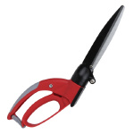 刃は、錆びや汚れに強いフッ素コート加工(上刃のみ)を採用しています。 作業時の手のケガを防ぐ安全ガード付きのハンドルです。 底部保護設計なので、本体を地面につけたまま作業が可能で、手の怪我や汚れを防ぎます。 植木の間やブロックなどのキワ、奥まった場所でも使いやすい細刃タイプです。 |
