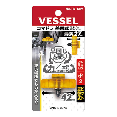 全幅42mmの大型グリップを採用した、力を入れやすい形状です。 ビット交換可能な差し替え式となっており、さまざまなサイズの交換用ビットをお使いいただくことができます(交換用ビットは別売です)。 |
