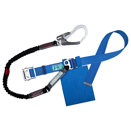 ●胴ベルト:幅50mm×長さ1200mm。 ●ランヤード:幅32mm×長さ(収縮時)1100~1200mm・(伸長時)1550mm・フックFS-99・ショックアブソーバ付。 ●ベルト色:青。 ●ランヤード色:黒。 |