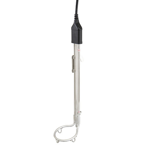 三本脚でバケツの底部にヒーターが接地することを防ぎ、バケツ内での安定感が高くなります。 パイプ部分はステンレス製でサビにくく、お手入れ、保管がラクです。 最低、最高水位線が本体パイプにマークされているため、消えてしまったりはがれてしまう心配がありません。 フック部分は可動式のため、バケツのサイズに合わせて調整が可能です。 |