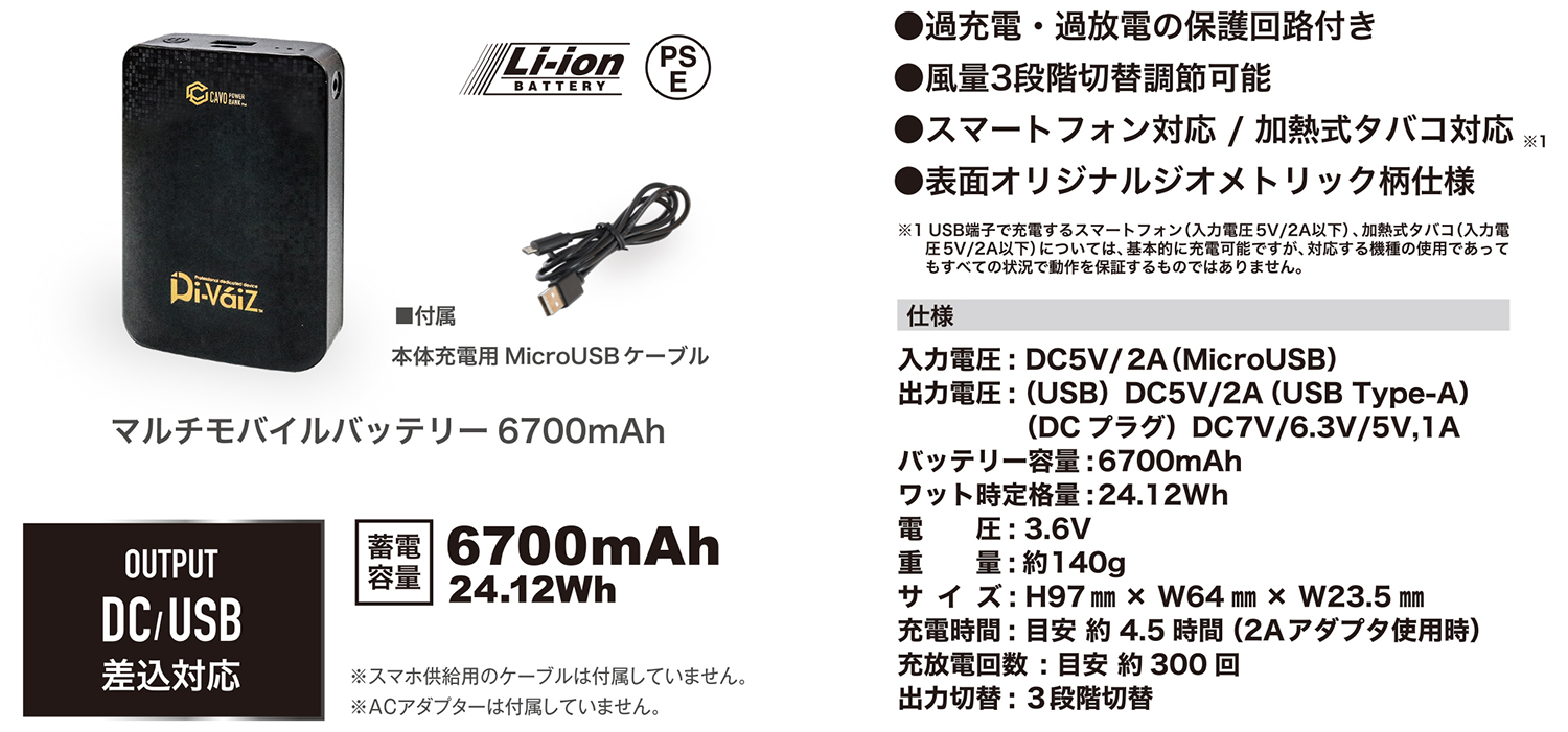 用途 | ワークウェア(ファン対応ウェアフルセット)。 |