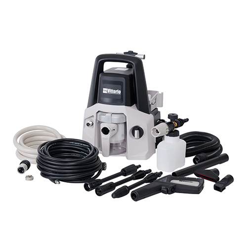 スイッチ一つで高圧洗浄機とバキュームクリーナーの切り替えができます。 きめ細かい泡を出せるフォームランス付きです。 伸縮ハンドルとタイヤ付きで移動も楽に行えます。 モノトーンデザインで周りとも調和し、コンパクト設計です。 |
