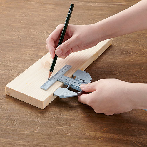 基準面に対して、45度角度線の印付けができます。 基準面への垂直線の延長ができます。 等分割ができます。 板厚の測定ができます。 |