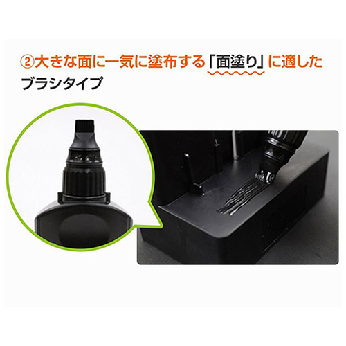 ユーザー待望の30mLという大容量で、買い替え・詰め替えのわずらわしさから解放し、一回での大量使用にも対応しています。 付属のUV_LEDライトを当てれば4秒で固まり、修繕後には研磨、穴あけ、塗装などの加工も可能です。 大きな面に一気に塗布する「面塗り」に適したブラシタイプです。 大きな「面」をカバーすることを考慮し、硬化用のUV_LEDライトも大型でパワフルになっています。 |