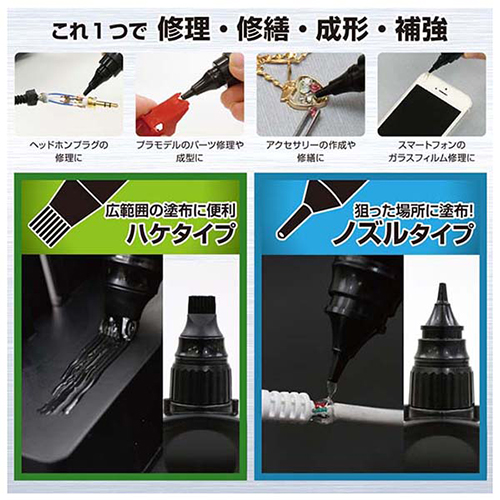 | 用途 | プラスチック・金属・木材・石・レンガ・ガラス・セラミックなどの修理・修繕・成形。 |