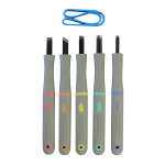 表面のエラストマー樹脂はすべりにくく使い易さ抜群です。 柄の色と刃の形状マークで、刃の種類が簡単にわかります。 |