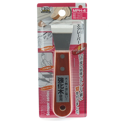 | 機能・特徴 | 1.2mm厚の特殊ステンレス鋼(SUS420J2)に刃を付けた小型スクレーパーです。