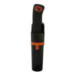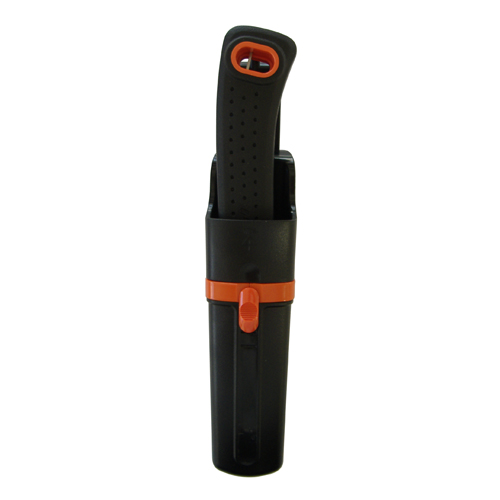 ケースと一体にベルト掛けができ、ナイフの出し入れがとてもスムーズです。 本体は滑りにくく使いやすいゴムグリップ製で、ケースは衝撃に強いプラスチック製です。 VVFケーブルの割線・皮むき機能付です。 収納ケースにロック機能を採用しています。 |