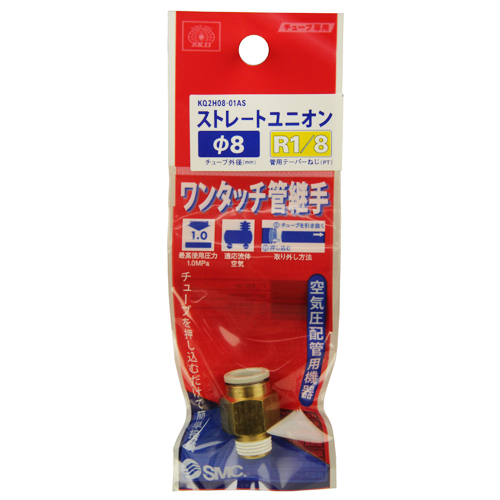 ●適用チューブ外径:8mm。 ●接続ねじ:おねじR(PT)1/8。 ●使用圧力範囲:-0.1~1MPa。 ●周囲温度:-5~60度。 |