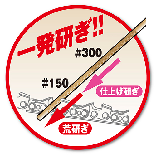 | 機能・特徴 | 荒研ぎ仕上げが一本に段差なく連続搭載してあり、目詰まりしにくく荒研ぎ仕上げが連続して行えます。