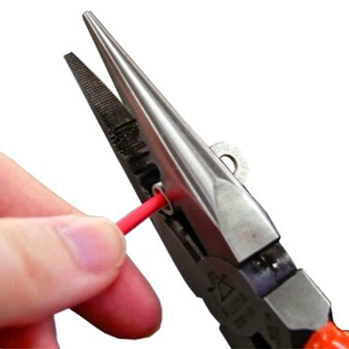 便利な簡易圧着機能付で、1.25mm2の端子を圧着できます。 ビニール線の皮むき機能付で、径1.2mmのビニール線の皮むきが可能です。 くわえ部は滑りにくいギザ付きです。 |