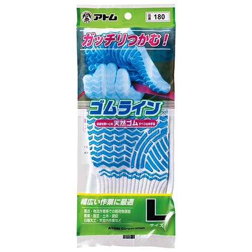 | 機能・特徴 | 編み手袋に手の平の動きを考慮したライン状の天然ゴムを配置したすべり止め手袋です。