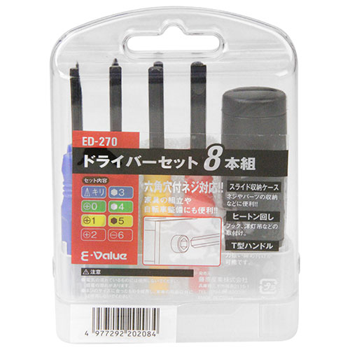 ●セット内容1:プラスドライバー(+0、+1、+2)。 ●セット内容2:マイナスドライバー(-6)。 ●セット内容3:六角ドライバー(H3、H4、H5)、キリ。 |