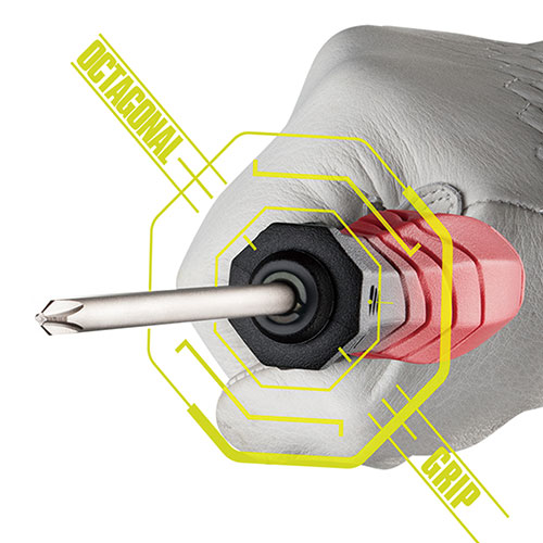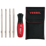 軽くて持ちやすく滑りにくいグリップは、油や薬品に強いポリプロピレン樹脂製です。 無電解ニッケルメッキにより嵌合精度抜群の差替軸は、軸曲りのない全身焼入れで、ネジを吸着するマグネット入りです。 ドライバーをコンパクトに収納できるバッグ付きです。 バッグは柔らかくて摩耗に強い、耐久性のあるポリエステル生地を使用しています。 |