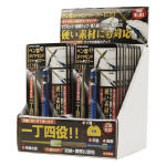 | 機能・特徴 | 1丁4役(平・半丸・先細・V溝)のシャープナーです。