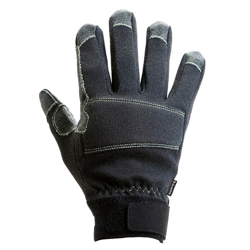 掌部の素材はアラミドニットの表面にシリコン樹脂を塗布したハイブリッドな素材で、優れた耐切創性を発揮します。 アラミドシリコーン素材の表面に直接ライターの火を当てても表面の変化が少なく、燃えにくい特性があります。 掌側は拳を握ってもなるべくたるまないようにカットラインに工夫を施しています。 掌側裏面には吸汗速乾素材を使用し、装着時の快適性を保ちます。 |