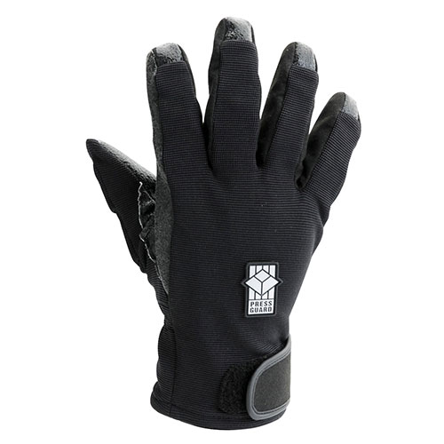 親指の耐圧板はアウタータッのタックの中に収まる様になっており、指の動きを妨げません。 指先に縫い目をなくし、縫い代が指先にあたることなく、フィット感を高めています。 裏地と表地のずれ感を解消すべく、裏地掌の表面にドット状の滑り止めプリントを施しています。 耐圧手袋の表地掌側には特殊開発のエンボス入りシリコーンレザーを採用しています。 |