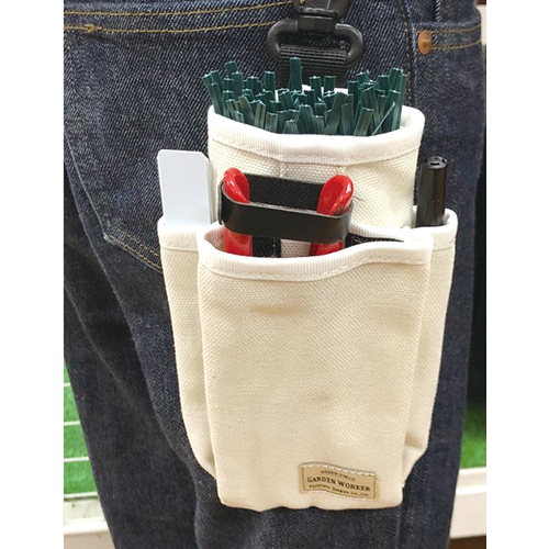 園芸道具・小物・スマホ等なんでも収納できるシンプルデザインです。 カラビナ付きで楽々装着可能です。 |