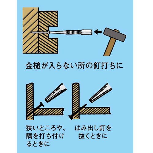 頭は四角で転がらないです。 先端部のみ焼入れを行い、反発を抑えています。 |