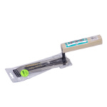 溶接にかわる高品質接着剤でこてと背金を接着しています。 背金巾をバランスよく加工し、こて板にかかる力を全面に分散させることで均一に磨耗します。 細巾で狭い箇所の作業に最適です。 実用新案登録です。 |