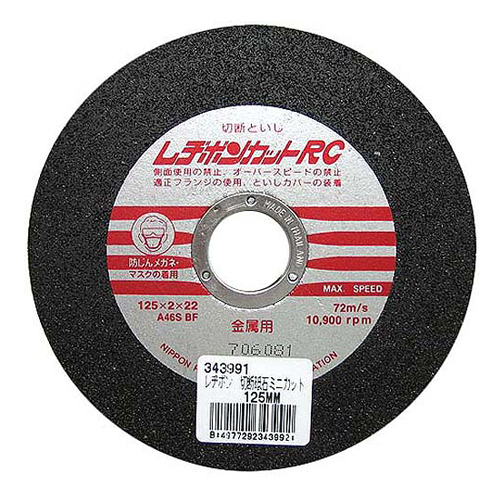 ●と材粒硬度:A46S。 ●最高使用周速度:72m/s。 ●一般鋼・鋳鉄用。 |