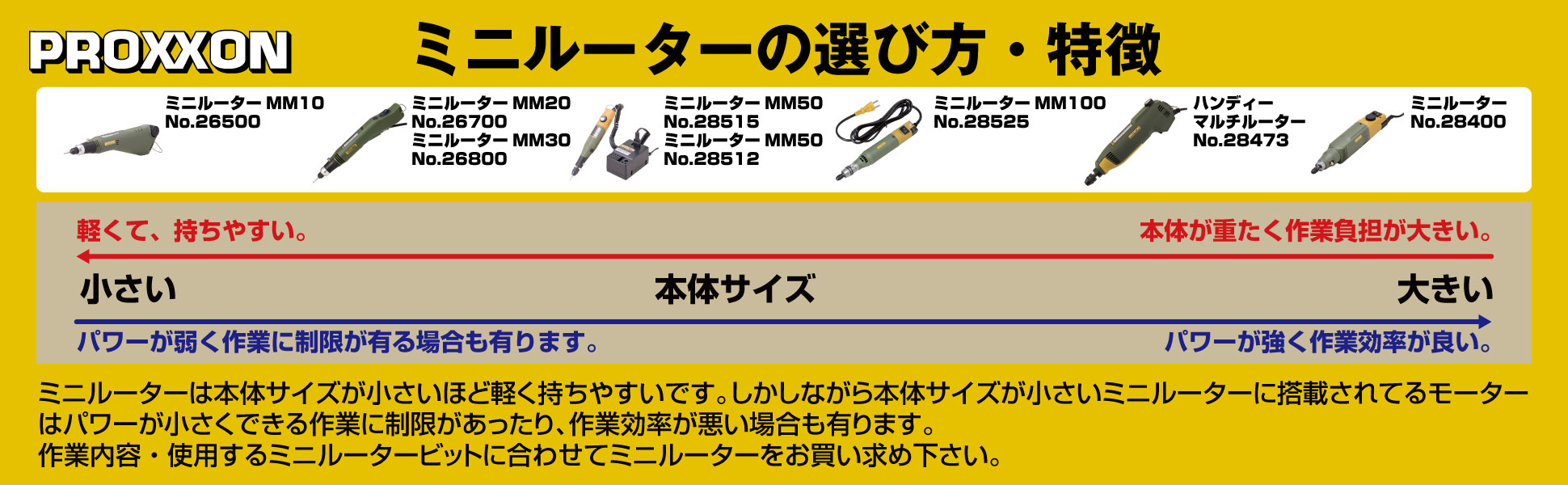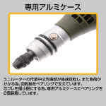 ●消費電力:35W。 ●回転数:8000~18000min-1(回/分)・無段電子コントロール付。 ●本体長さ:230mm。 ●本体太さ:径35mm。 ●重量:260g。 ●定格使用時間:15分。 ●PSEマーク認証。 |