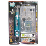 ●本体寸法:41mm径(先端握り部20mm径)・長さ163mm。 ●重量:350g。 ●電源:AC100V・50/60Hz・出力132W。 ●定格時間:15分。 ●モーター寿命:200時間(無負荷時)。 ●使用可能先端工具:2.34mm/3mm軸。 ●先端工具:22本付。 |