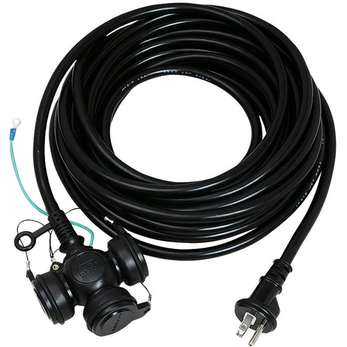 ●コンセント:3P接地X3ツ口。 ●色:黒。 ●電線サイズ:VCT3芯X2.0sq。 ●長さ:10M。 ●屋外型。 ●電線許容電流:22A。 ●防雨キャップ付。 |