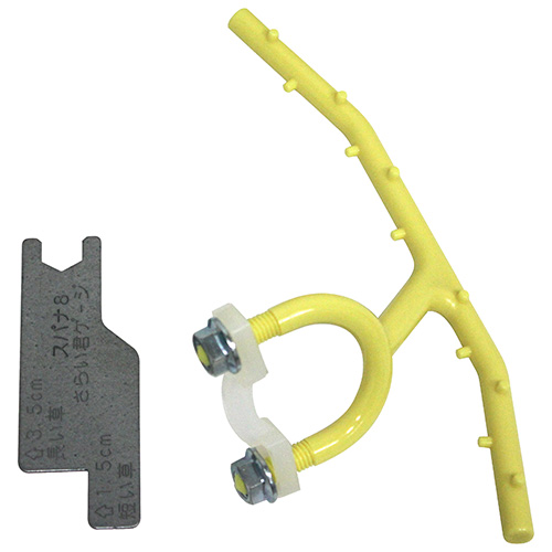 ほとんどの草刈機に取付け可能で、つけっぱなしでもOKです(35mmのギアボックスまで対応)。 草が刈刃に巻きつきにくく安全です。 田畑の畦や水路の側溝など草を落とせない場所で大活躍、草の後始末がラクになるアイデア商品です。 |