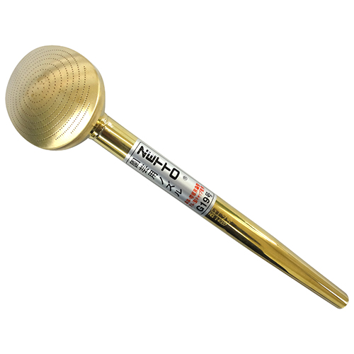 特殊噴板使用でソフトな水かけができます。 総真鍮磨き仕上げで長持ち仕様で、微妙な絞り加工で手になじみやすい形状は、1本ずつ半田付けをおこなう手作り品です。 |