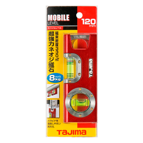●気泡管:水平・垂直。 ●指標線数:水平6本リング。 ●気泡管精度:±1.5mm/1m(±0.0859度以内)。 ●蓄光シート。 ●磁束密度:約330ミリテスラ(mT)。 ●アルミダイカストボディ。 ●マグネット1個付。 |