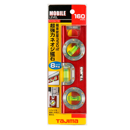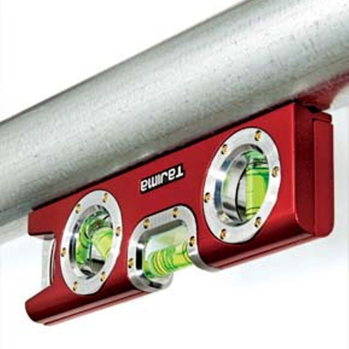 ●気泡管:水平・垂直・45度。 ●指標線数:水平6本リング、垂直・45度4本リング。 ●気泡管精度:±1.5mm/1m(±0.0859度以内)。 ●蓄光シート。 ●磁束密度:約330ミリテスラ(mT)。 ●アルミダイカストボディ。 ●マグネット1個付。 |