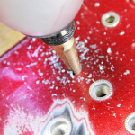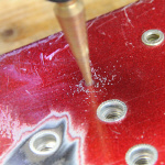 穴あけ中はインパクトのかからないように穴あけしてください(使用中ガッガッガッと音がなるとインパクト機能が働いています)。 穴あけ時には切削油を注油しながら作業をして下さい。 |