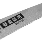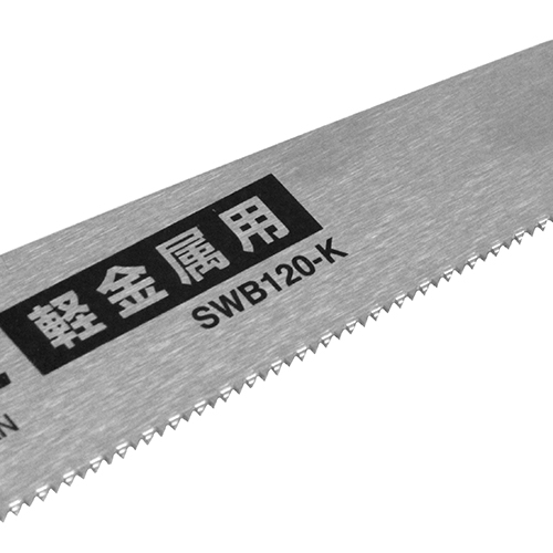 ●刃数/寸:(木工用)16枚目・(軽金属用):21枚目。 ●板厚:0.6mm。 ●ブレード表面処理:(木工用)クリアー塗装仕上げ・(軽金属用)無電解ニッケルメッキ仕上げ。 ●刃先衝撃焼入れ(軽金属用)。 ●刃:木工用・軽金属用。 ●グリップ部カラー:グリーン。 ●専用替刃品番:(木工用)SWB120-M・(軽金属用)SWB120-K。 |