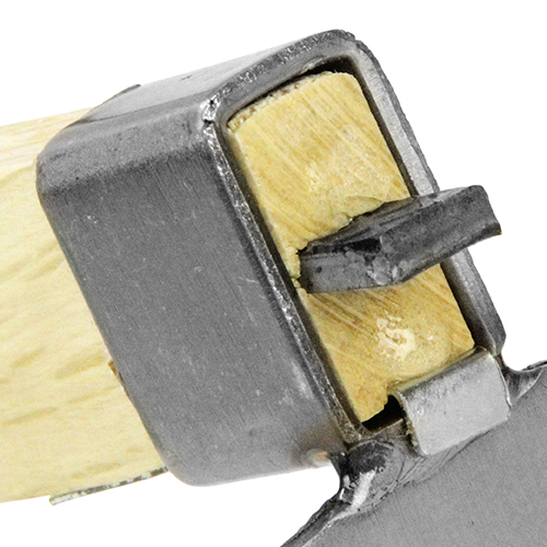 抜けにくく安全に作業が行えるL型クサビを使用しています。 ヘッド部はステンレスなので、錆びにくいです。 ヘッド部は細幅タイプで、狭いところの穴掘り、土起こしに最適です。 |